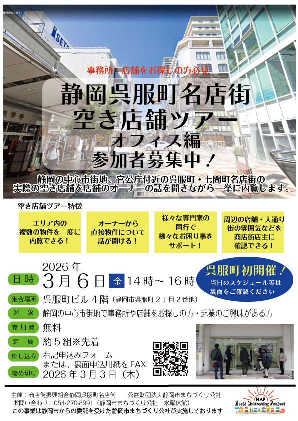 静岡市のおまちのメイン通り呉服町名店街の空き店舗ツアーを初めて開催します!!